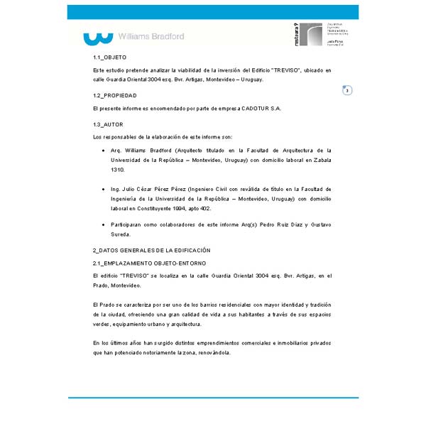 Este estudio de viabilidad tiene como objetivo analizar, identificar y diagnosticar la situación actual del proceso de obra de un Edificio de Vivienda Colectiva (Auditoria de obra). Además se analizó las posibilidades de continuidad de la inversión y su repercusión en la rentabilidad del proyecto.